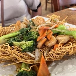Ap Chao number 42 on the menu. Get it if you like noodles and you like a little crunch. They are big thick square fried noodles with vegetables and protein. Just found this dish at another place and it is by far my favorite asian dish ever.